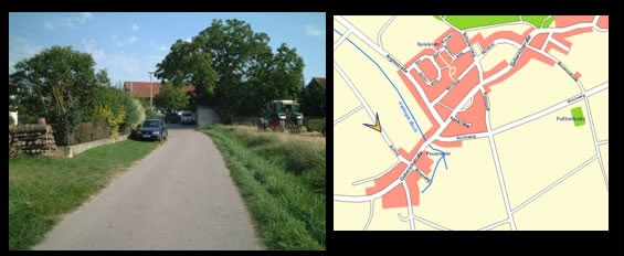 Sie kommen vom Iradinger Bach auf die Geberichstraße zu.