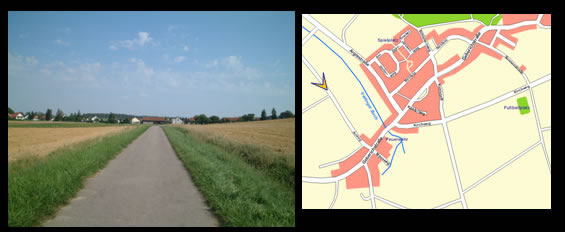 Sie kommen vom Iradinger Bach auf die Geberichstraße zu.