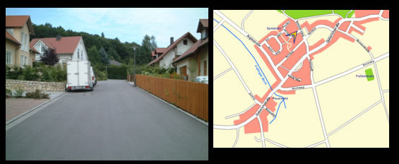 Nun bewegen Sie sich im Neubaugebiet nach oben...