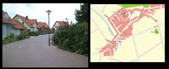 Nun bewegen Sie sich im Neubaugebiet hinab...